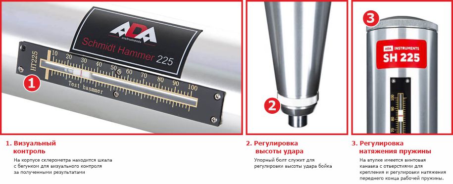 Принцип действия склерометра основан на ударе с нормированной энергией бойка