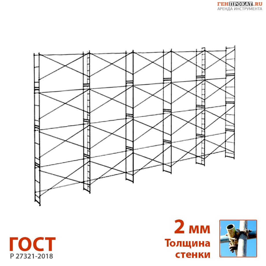 Рамы лесов изготовлены из стальной трубы 48 мм с толщиной стенки 2 мм.